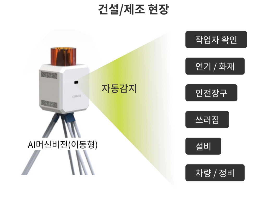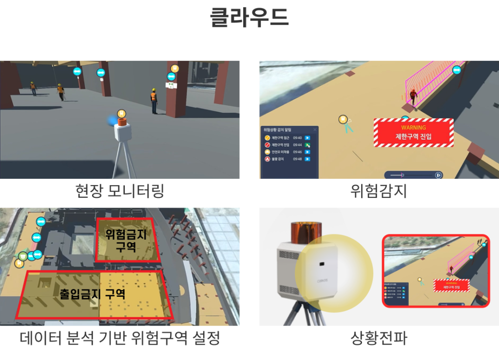 - 내장된 카메라 또는 지능형 CCTV 연동을 통해 현장 위험상황 및 이상행동 감지